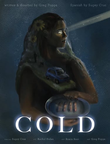 Cold tells the story of Carmen, a Latina woman who wakes up in Purgatory and is given 1,000 days to fix the vehicle in her driveway or spend the rest of her life lost to time. Throughout the film Carmen must battle her harsh environment, isolation and her rapidly declining mental and physical health. Cold is a story of depression, loss and trauma re-lived on repeat day after day after day. As such we want the audience to feel Carmen's frustration and pain while on the hamster wheel of despair. Cold explores the pain of losing a child to suicide and a mother's struggle to move on.